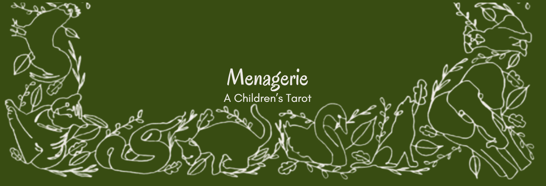 Menagerie is a tarot made for everyone, but with children in mind. My 11 year old likes to do tarot with me but we hadn’t found a set of cards for them that introduced real concepts from traditional tarot, but in a simplified and accessible way.