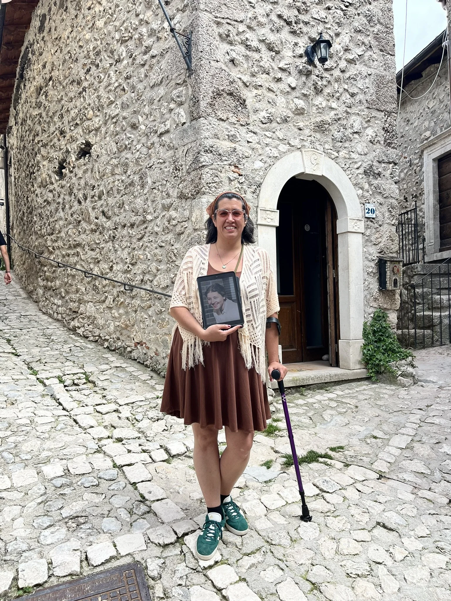 My needs have changed over time and so have my mobility aids. Two years ago I bought crutches leading up to a trip in Italy where I knew I wanted to be able to climb on mountains. Today I mostly use a walking stick, which works like a cane but is better for my posture and shoulder pain. So now I have a stockpile of aids to deploy as needed. They have helped me to get stronger, to do more when I am not strong, and to relax a little more when I’m feeling good. There are plenty of days I still feel negative, or complain about my health and all the contraptions – but I am beyond grateful for what mobility aids give me and how they benefit my life.