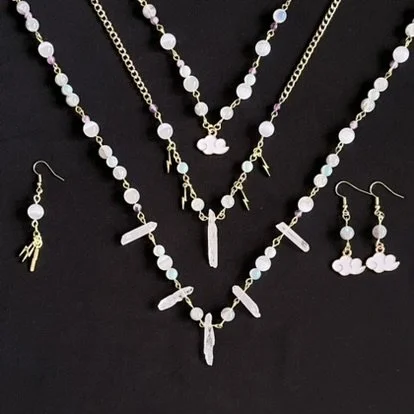 Charms are lightning bolts, representing strength, authority, and justice, and clouds, a symbol of transformation.
